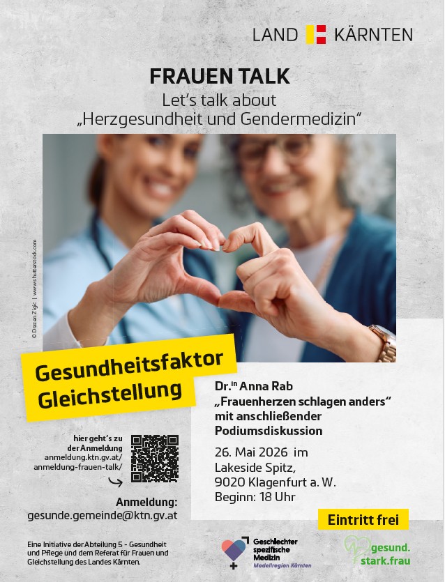 Im Anschluss diskutieren Expert:innen über Möglichkeiten zur Verbesserung der Herzgesundheit, Prävention, Gendermedizin und Chancenungleichheit in der medizinischen Versorgung. Kärnten ist seit 2021 die erste Modellregion Gendermedizin in Österreich.